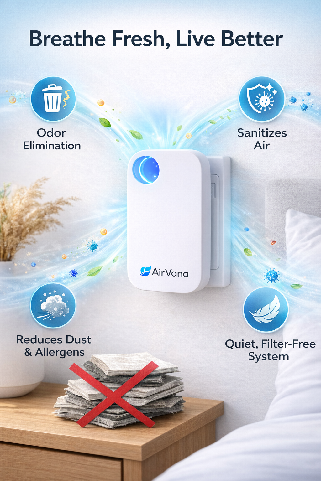 Made for anyone tired of stale air, lingering odors, and daily allergens, AirVana helps your space feel cleaner and fresher fast with quiet, natural, filter free purification.