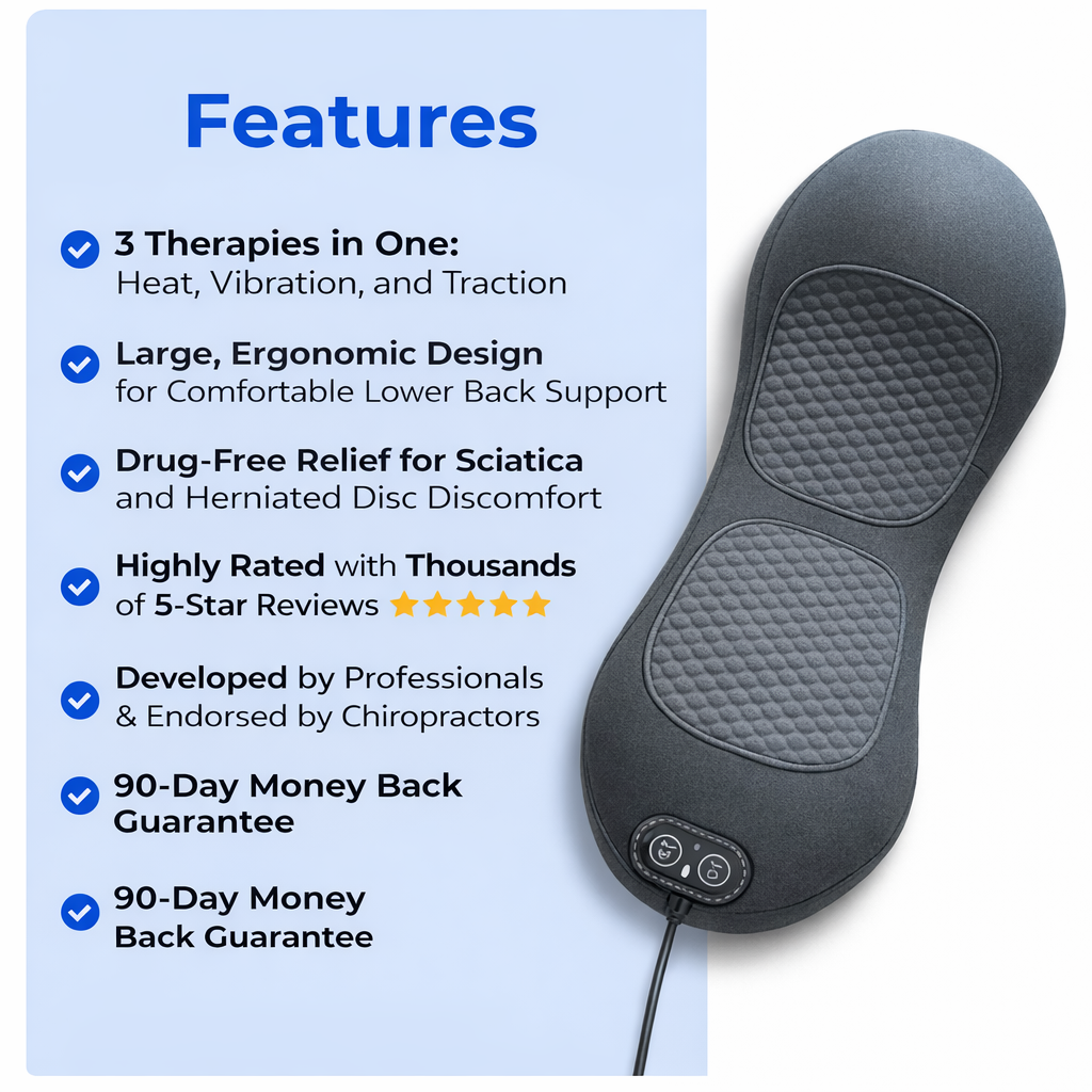 "I’ve struggled with crippling back pain and Sciatica for years. Sitting, standing up, lying down, it all hurt. I was skeptical but after using this massager for just 1 week, I noticed a HUGE difference. The stabbing pain in my low back is finally gone, and I can move without wincing again. I still use it daily, it’s so well-made. If you’re on the fence, trust me, it’s worth it!"