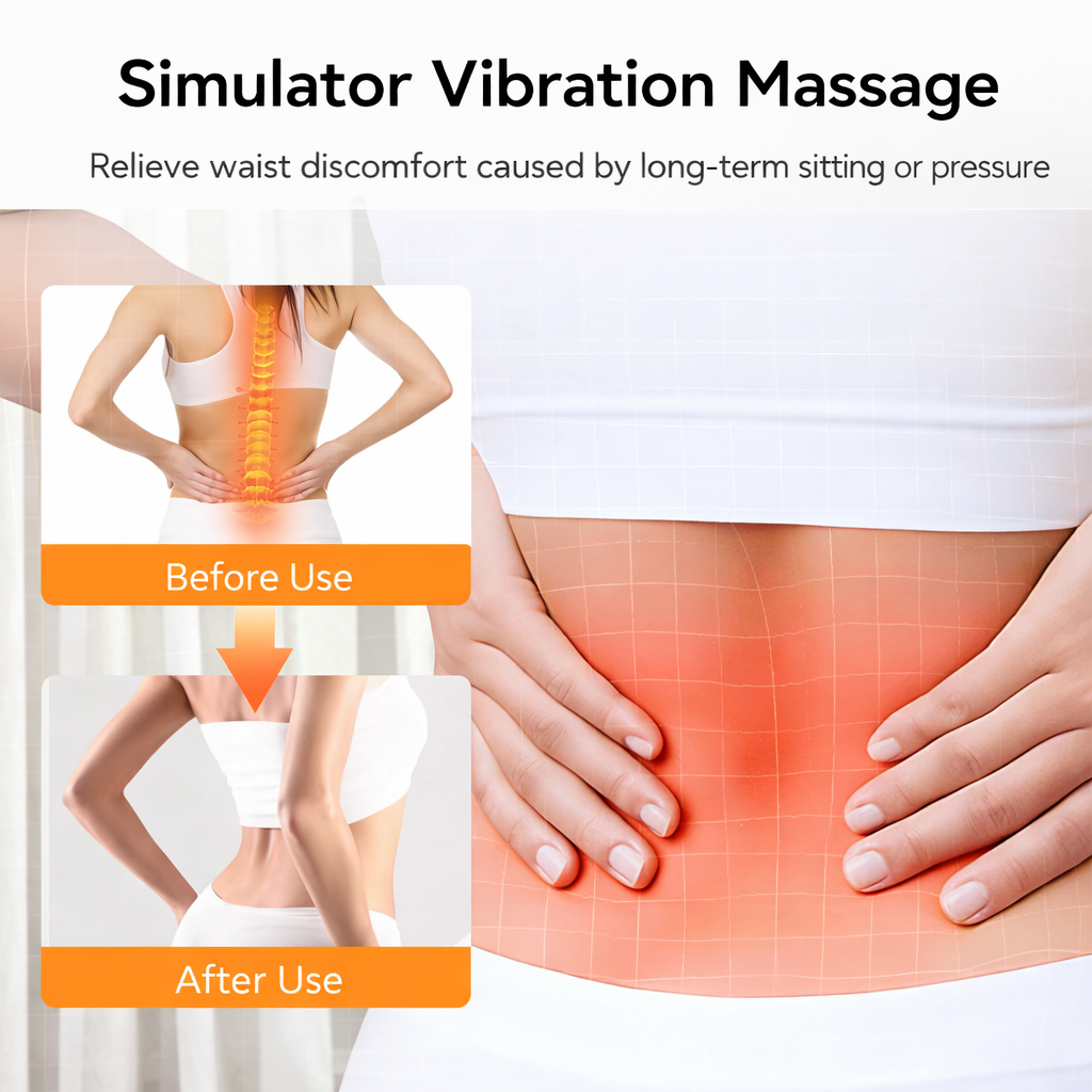 BackOra combines three therapies into one seamless session. The vibration massage loosens tight muscles and breaks up tension, while the constant-temperature heat increases blood flow and helps your spine naturally decompress. At the same time, gentle electric traction lifts and stretches the lumbar spine — relieving pressure on compressed nerves and restoring natural alignment.