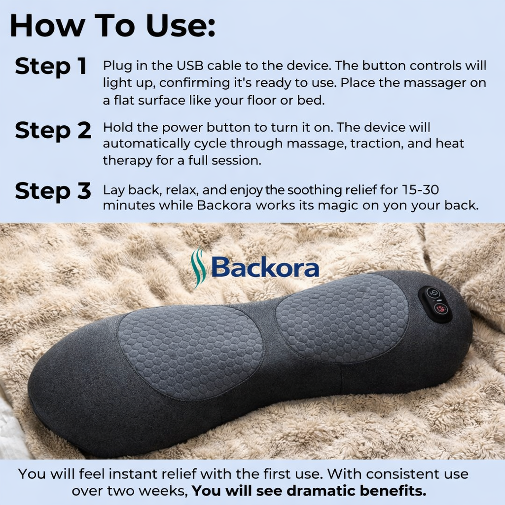 Lower back tension sneaks up on you — long shifts, too much driving, sitting wrong and suddenly you're moving like you aged twenty years overnight. I tried BackOra on the couch one evening and wasn't expecting much. The heat kicks in gently, just enough to make your muscles stop fighting you. The massage actually feels intentional, like it's working with your back, not just poking at it. Now it's part of my nightly wind-down. Lights low, heat on, back finally unclenching. One of those things you don't realize you needed until you feel the difference. - Anthonio S.